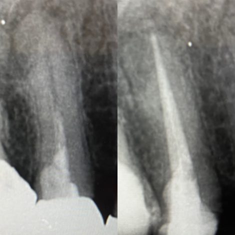 今日ご紹介する症例は 他院で治療セラミック修復を行い、その後、根の中が感染を起こしてしまったケースです🦷 抜歯の選択も提案されたそうですが、保存を希望され当院受診されました 確かに抜歯してイン…